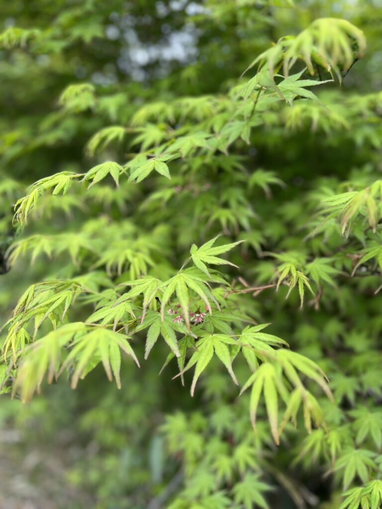 2026.04.18 イロハモミジの新芽が出てきました イロハモミジの『イロハ』は葉っぱの切れ込みの数え歌からきています。葉は手のひらのように五つから七つに深く裂けています。諸説ありますが、この裂片を昔の人はひとつずつ指差しながら「いろはにほへと」と数えたことから「イロハモミジ」あるいは「イロハカエデ」と呼ばれるようになったとされています。花言葉は「大切な思い出」「美しい変化」「調和」「遠慮」「節制」です。 葉の形が似ている『カエデ』との違いは・・ 『モミジ』は葉の切れ込みが深く、5〜7列に分かれていてシャープな印象です。 『カエデ』は葉の切れ込みが浅く、手のひらのように見える可愛らしさがあります。 シェアする ページ送り 一覧へ戻る 前の記事へ 次の記事へ