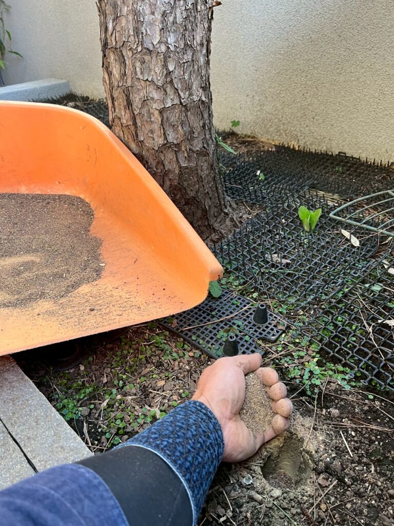 肥料は①葉を元気にする(チッソ)②花や実を元気にする(リン酸)③根を元気にする(カリ)があります。今回は松の葉を元気にしてもらいたいとのご依頼でしたので、チッソ成分が豊富な油かすを施肥しています。